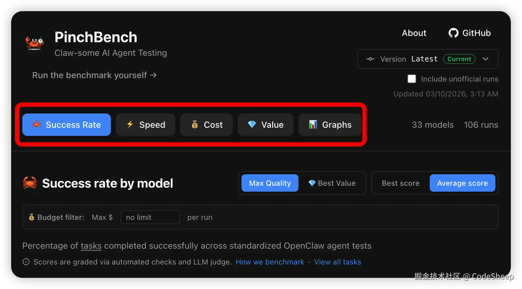 并且这个榜单还是动态更新的,最新的动态排名在 PinchBench 官网就可以直接查看。