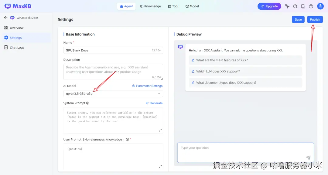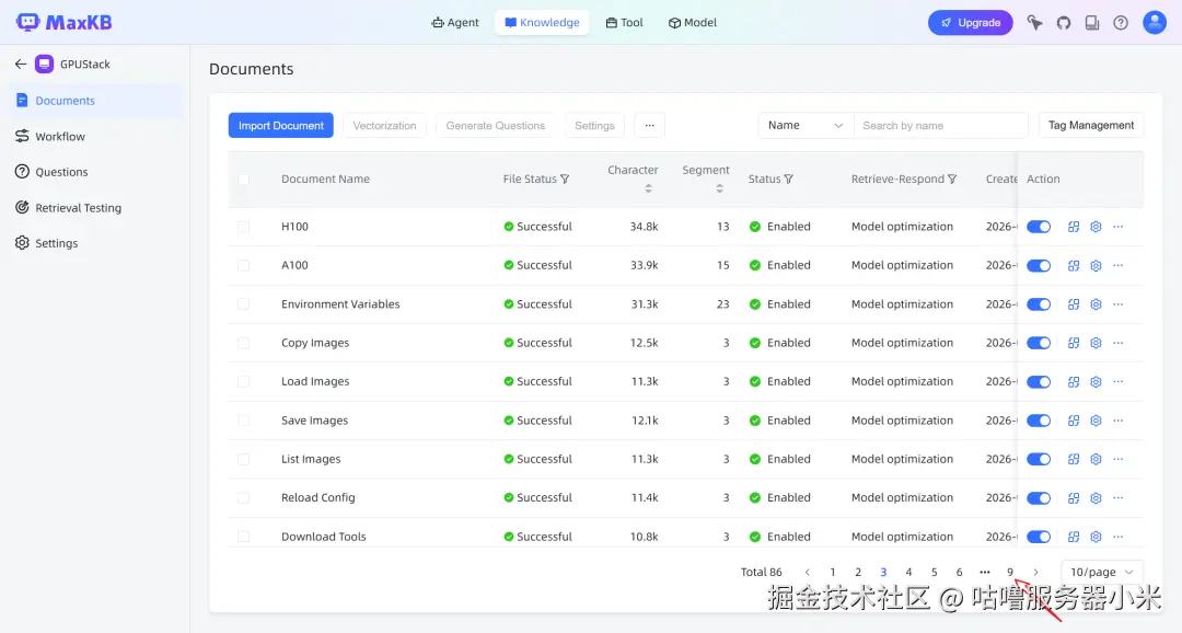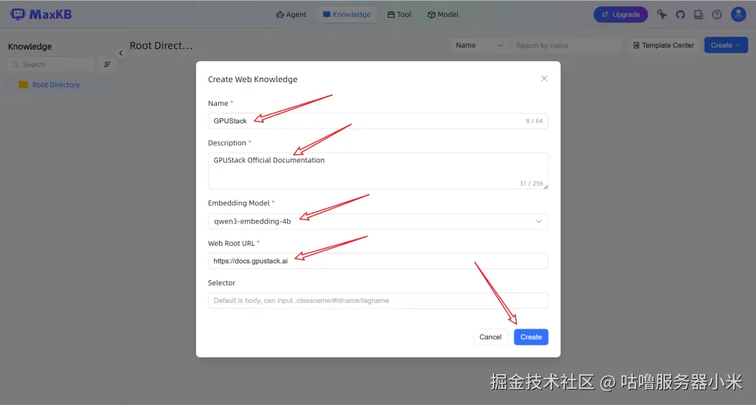 填入 GPUStack 文档地址,MaxKB 会自动抓取并解析页面内容。