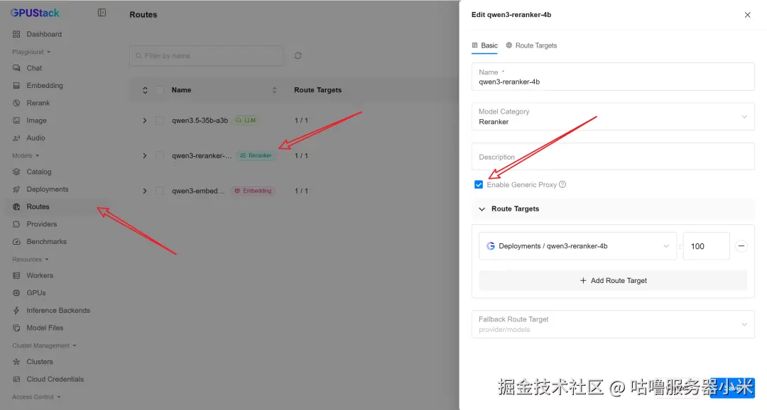 其中 qwen3-reranker-4b 需要开启 通用代理(Generic Proxy) :