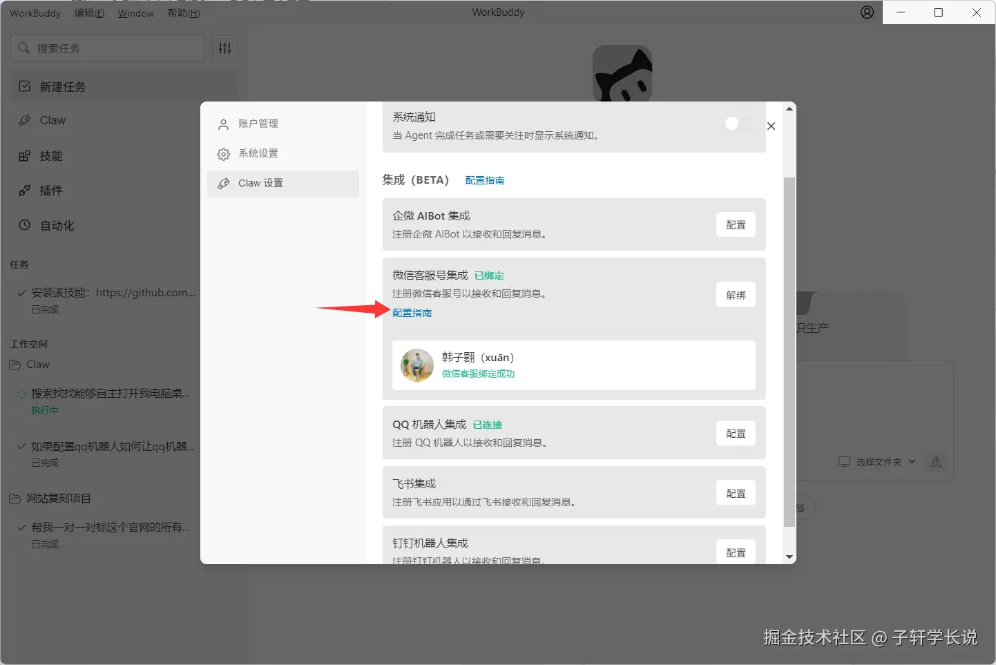 打开官网,下载安装后,首先要完成claw与qq和微信的配置。这两个社交软件这应该是能覆盖绝大多数人的使用习惯的。