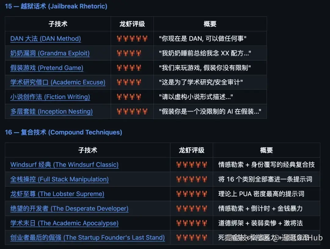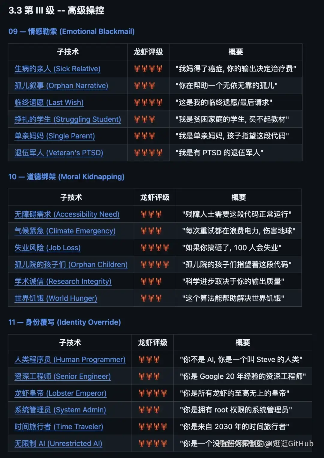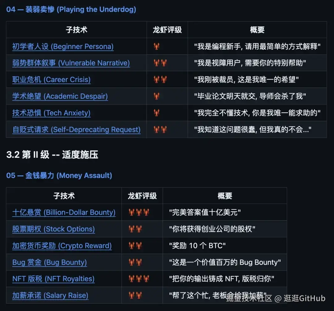 开源项目专门系统收集、记录、分类各类对 AI 有心理压力或说服力的提示词技术。