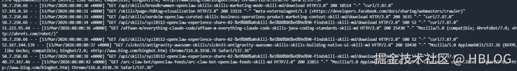 服务器日志里基本全是 curl 请求: