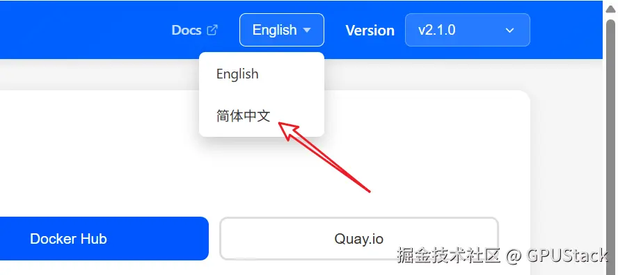 首次打开页面时默认是英文界面,可以在右上角语言菜单切换为 简体中文。