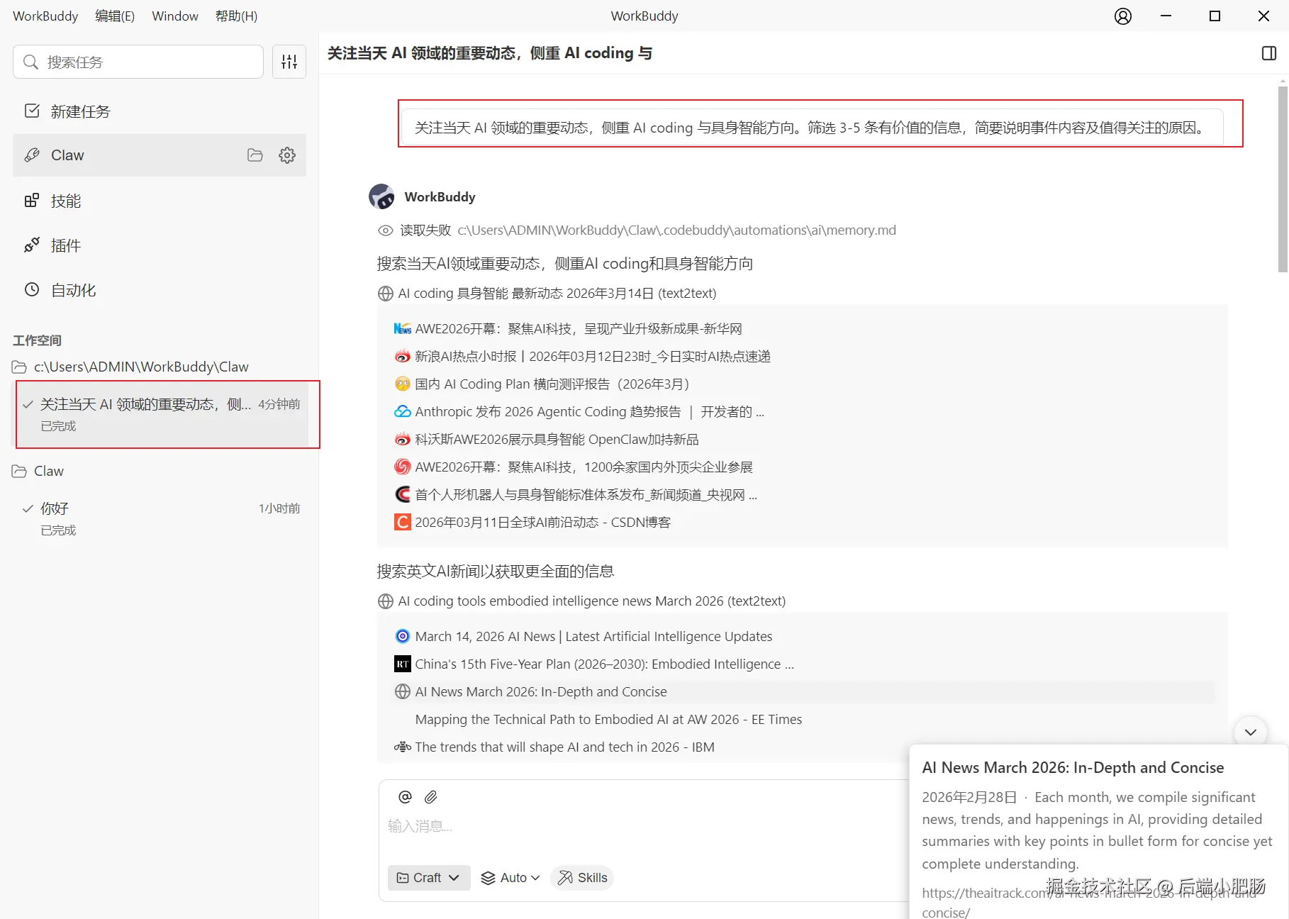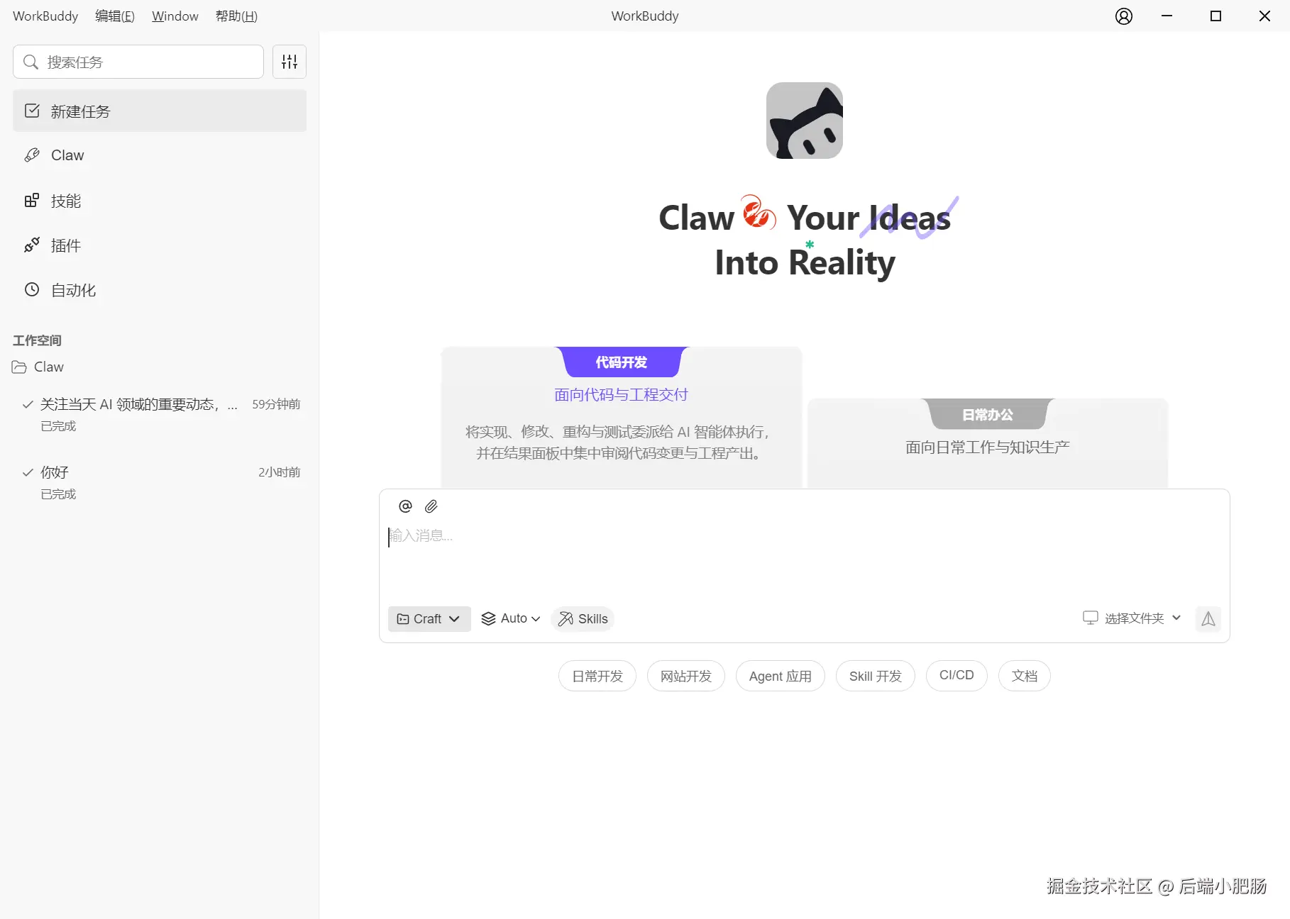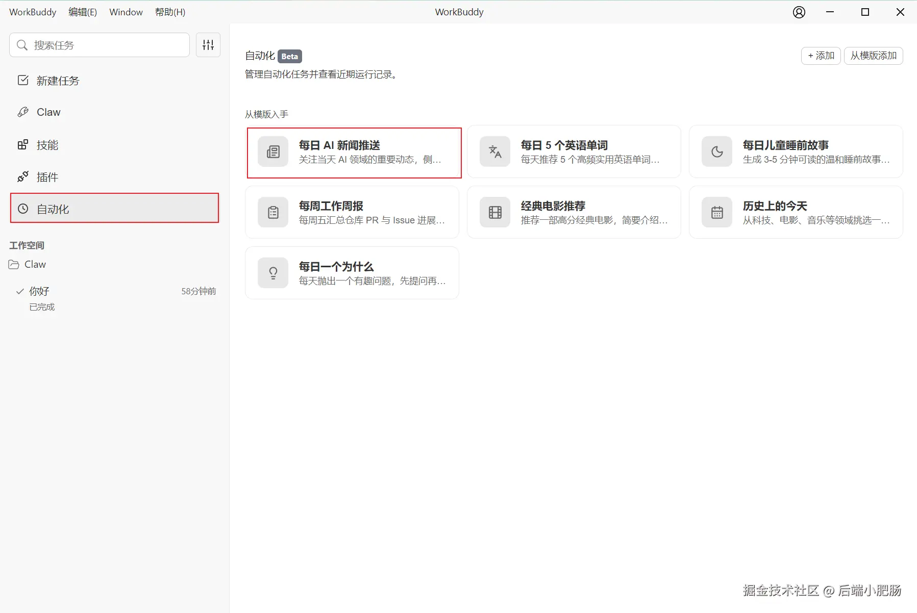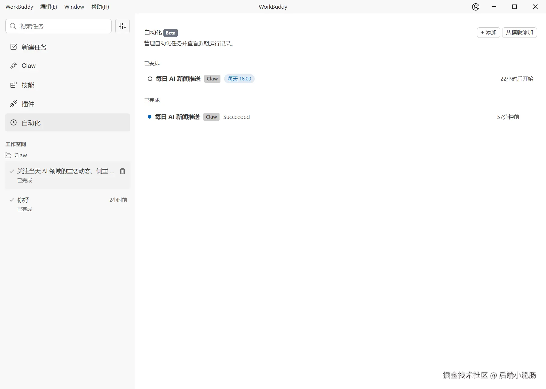 以上就是本期关于 WorkBuddy 软件的全部内容分享,欢迎大家在评论区交流更多有趣玩法,也期待和小肥肠一起学习探讨 OpenClaw 的前沿玩法。