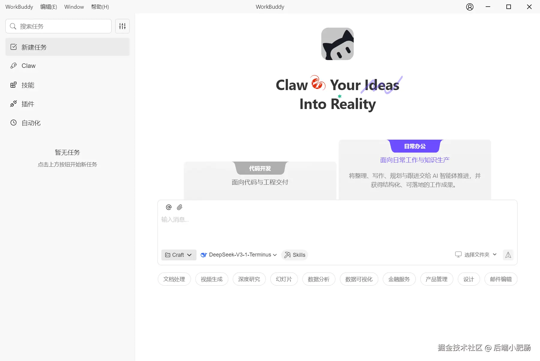 苦于环境配置、被终端报错折磨的小白们,现在终于有救了。因为大厂下场了——腾讯正式推出了自家的 AI 原生桌面 智能体 工作台 :WorkBuddy!