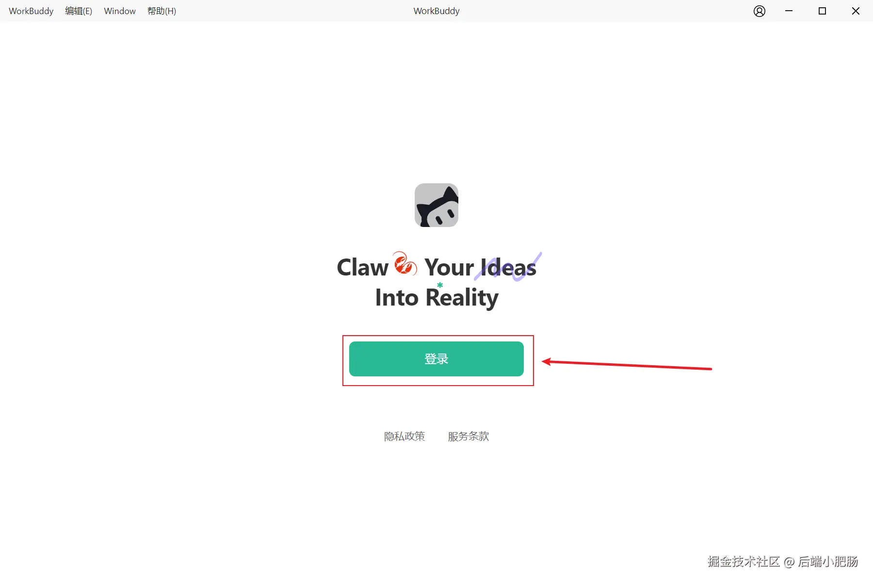 安装完成后在弹出的WorkBuddy中点击【登录】按钮,按照指示完成登录操作。