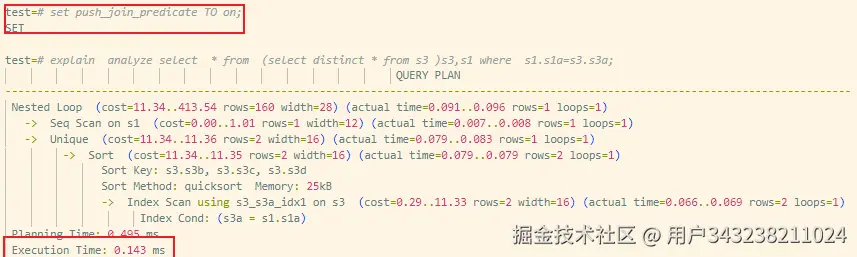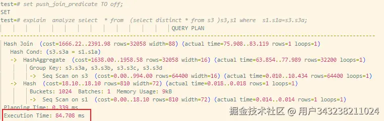 | 未下推 | 子查询全表扫描 + 去重 | 约84ms | - |