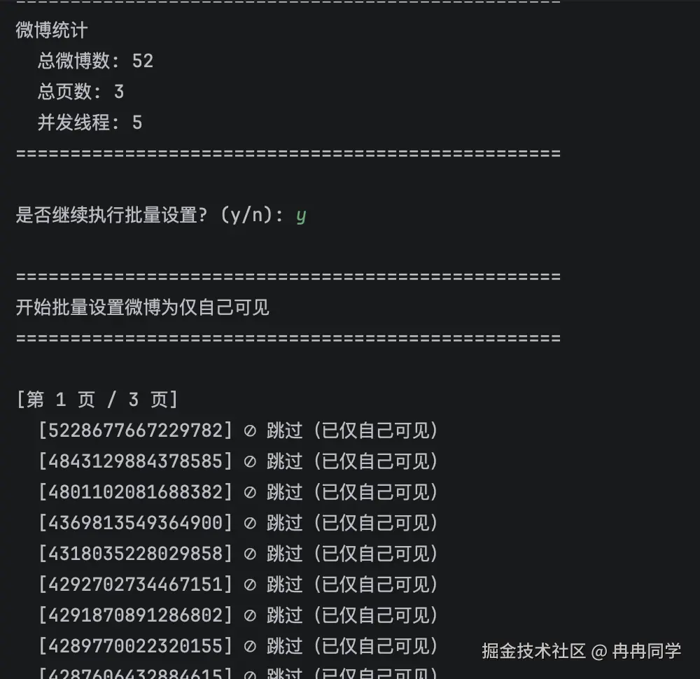 - 自动跳过已隐藏 - 自动跳过已经是仅自己可见的微博