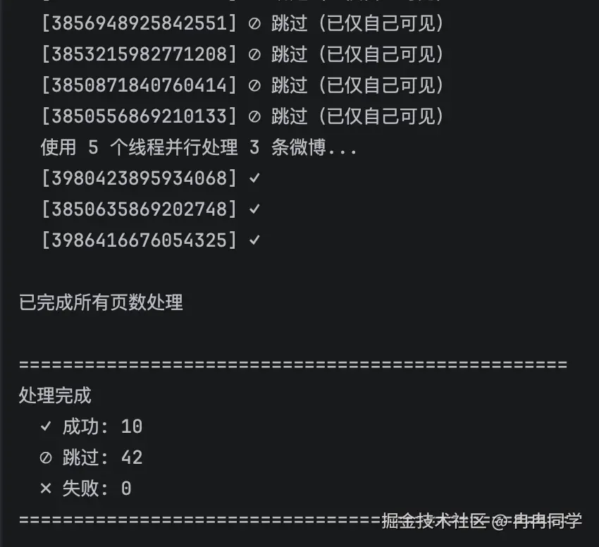 - 统计信息展示 - 显示总微博数、总页数和处理进度