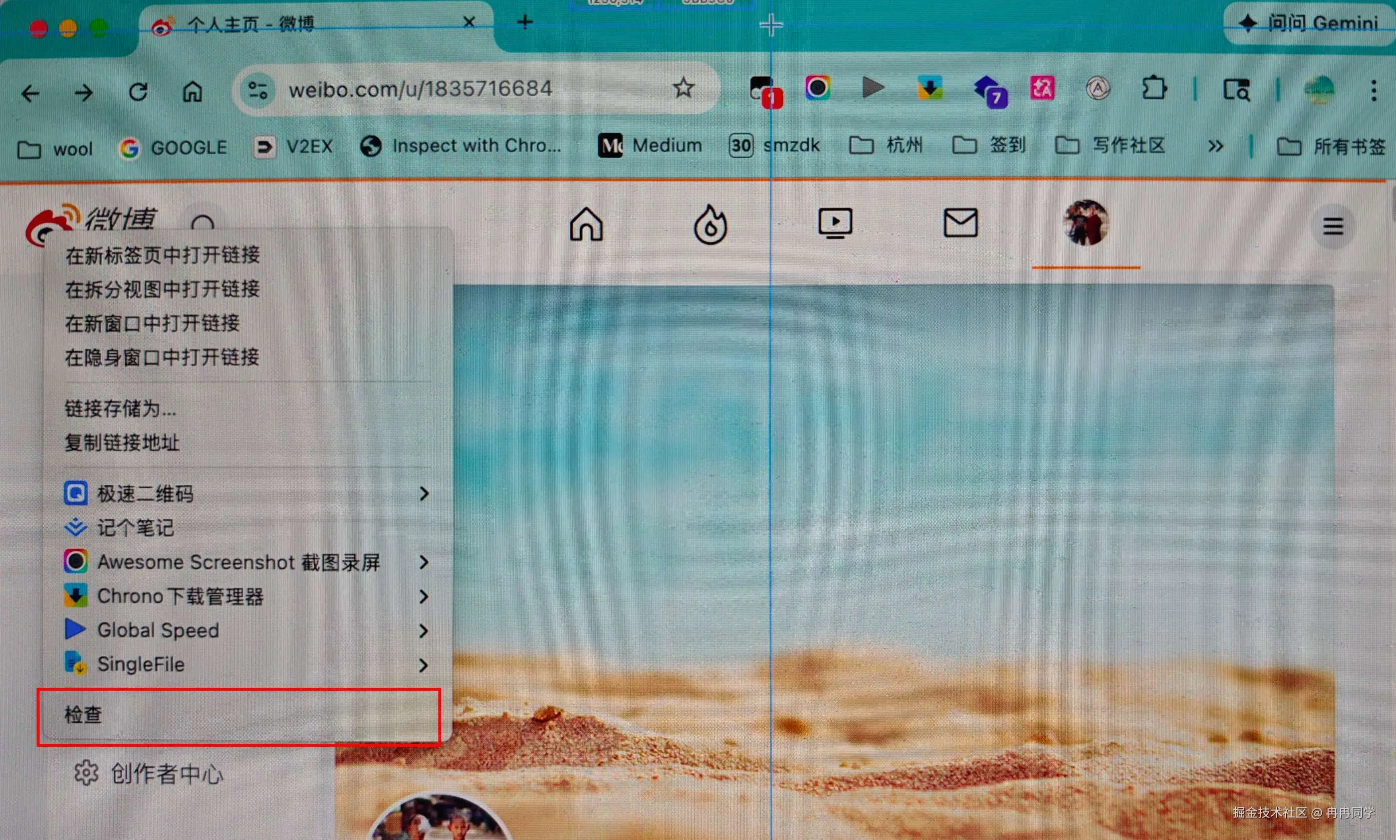 在网页任意位置右键点击 检查