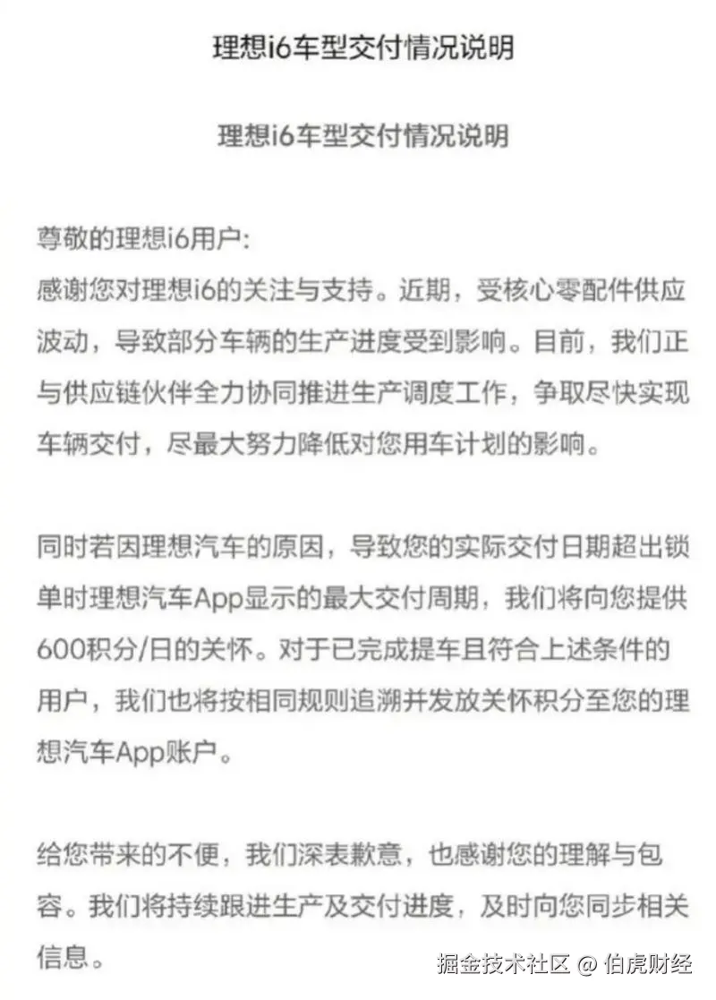 去年,理想i6因电池供应问题出现延迟交付,此事也流传出多个不同版本,有称宁德时代优先满足大客户产能,对理想“卡产能”,也有称理想借此逼用户选择欣旺达电池以实现降本。