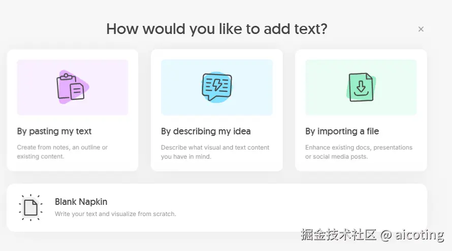 Napkin 是近一年在技术社区迅速流行的一款 AI 可视化工具,它最大的特点在于并不是传统意义上的绘图软件,而是一种“文本到图表”的转换系统。