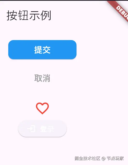 | ElevatedButton | onPressed(点击回调)、child(按钮内容)、style(样式) | 主要操作按钮(提交、确认、下一步) |