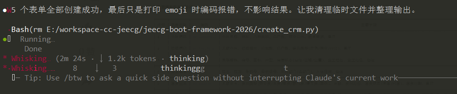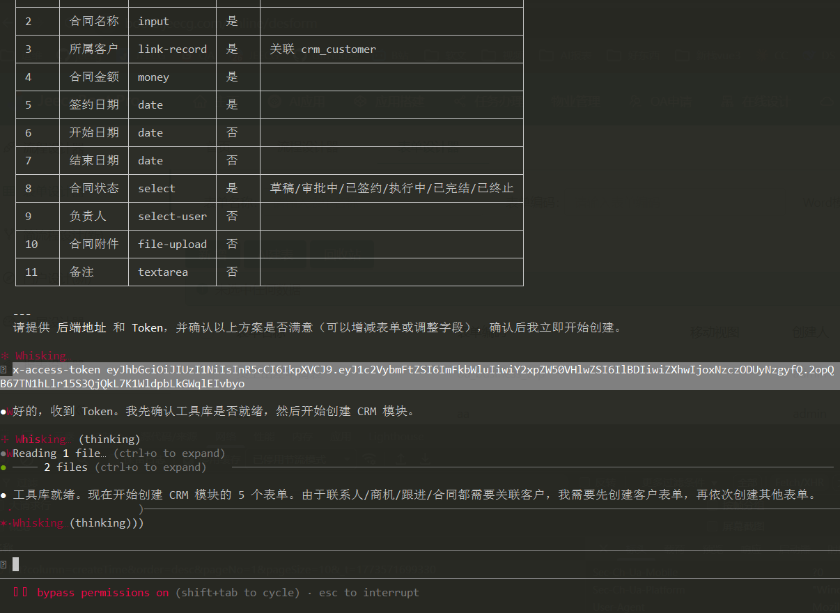 在 Claude Code 中输入指令:通过表单设计器,创建一套CRM模块,然后静待 AI 完成全部工作即可。