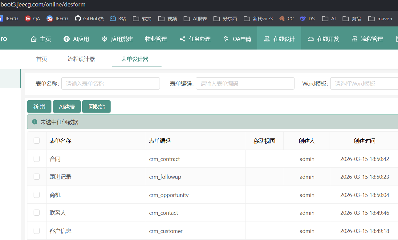 生成完成后,进入 JeecgBoot 表单设计器可以直接查看 AI 创建的表单: