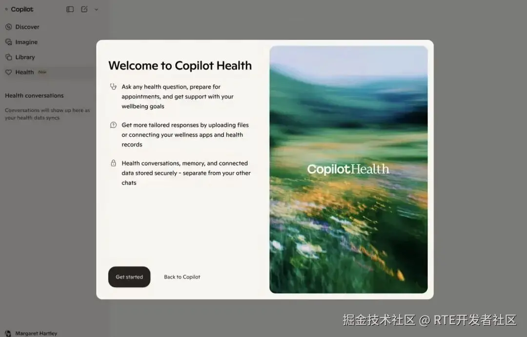 3 月 12 日,微软宣布推出「独立健康空间」Copilot Health,用户可以查询化验结果、查看医疗记录、搜索医生或医疗机构,并分析来自可穿戴设备的数据,还可完成各种健康相关问答。