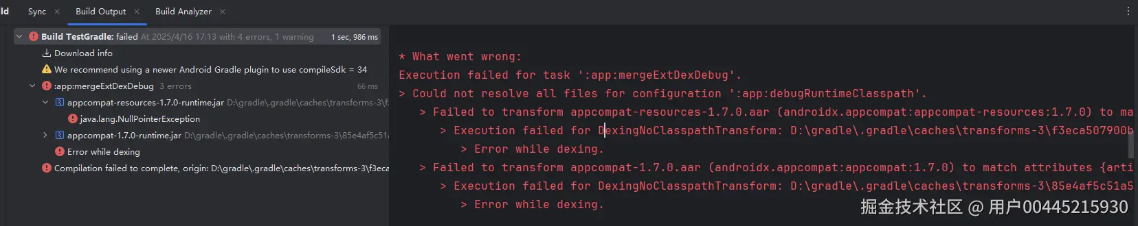 gradle 版本为7.5 AGP版本为7.4.2时,appcompat的版本应该为1.6.1 避免出现编译问题,如下截图