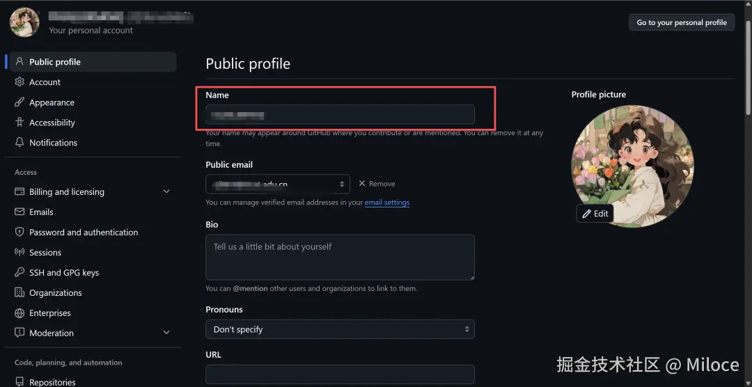 - 打开 Settings → Public profile