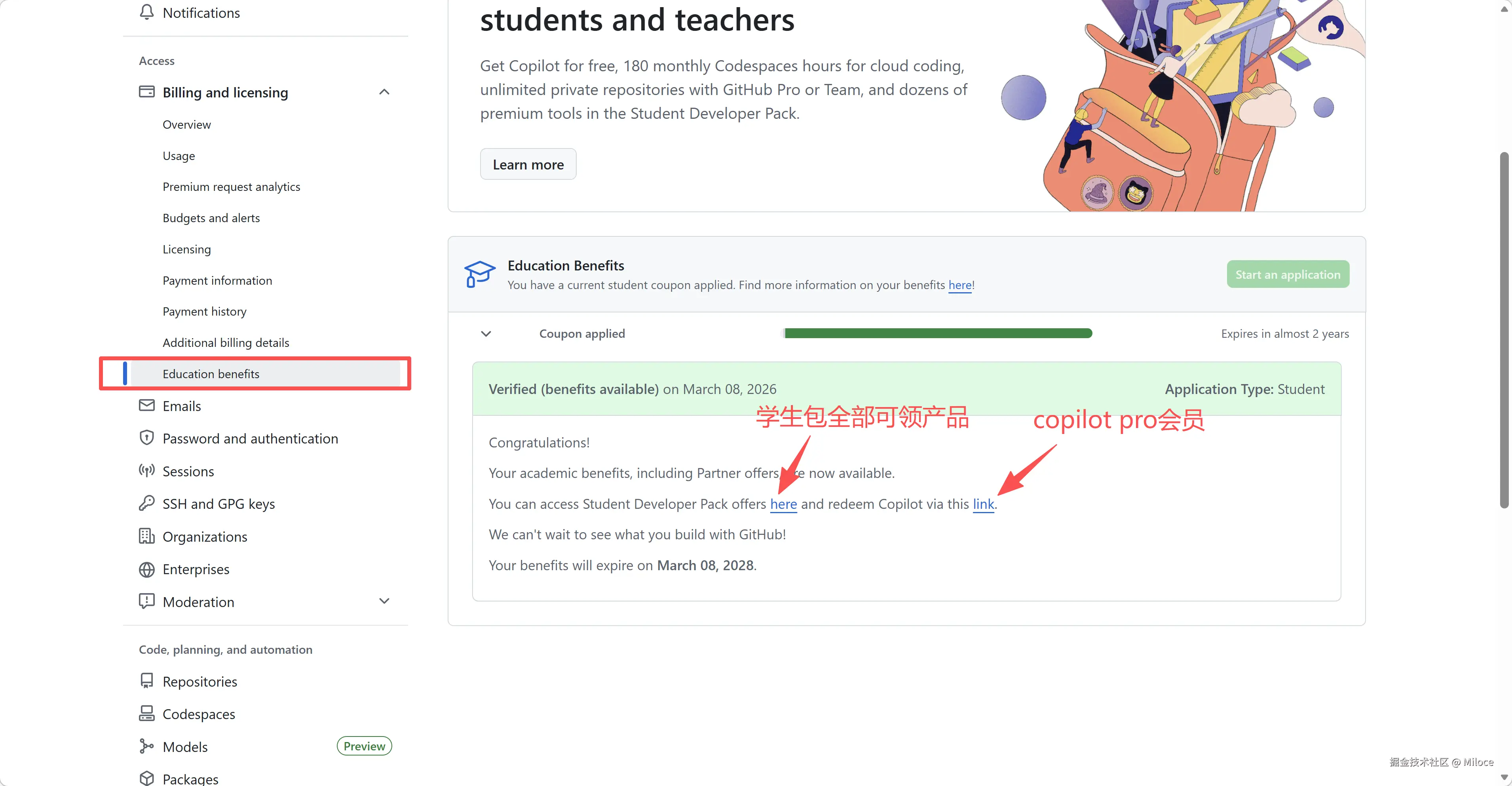 - 领取福利: 认证通过后去 Student Pack 页面点击获取权限