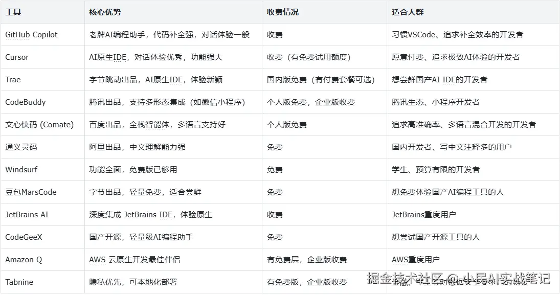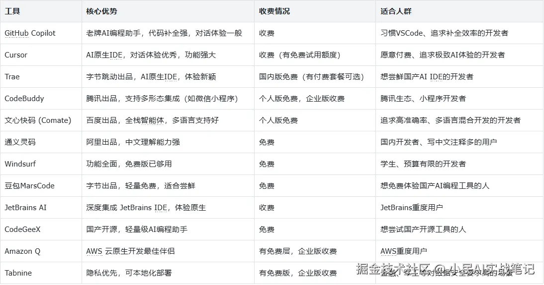 聊完认知和误区,下一个现实问题就是:市面上这么多AI编程工具,我到底该用哪个?