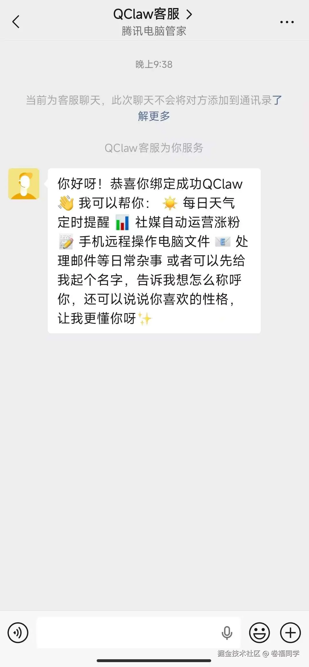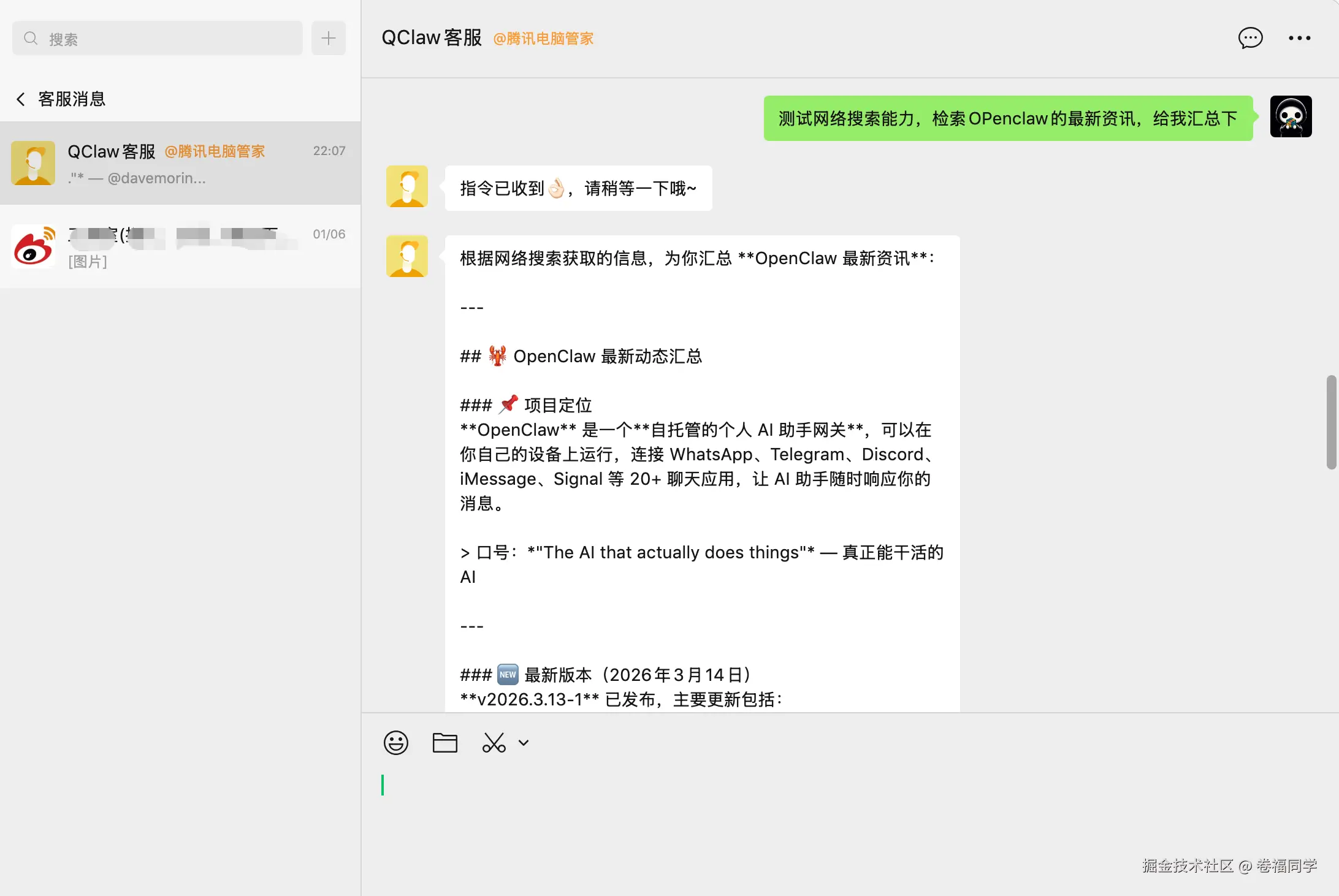 关联后,我们就能在手机上通过客服消息和QClaw沟通了,也能下达命令干活了