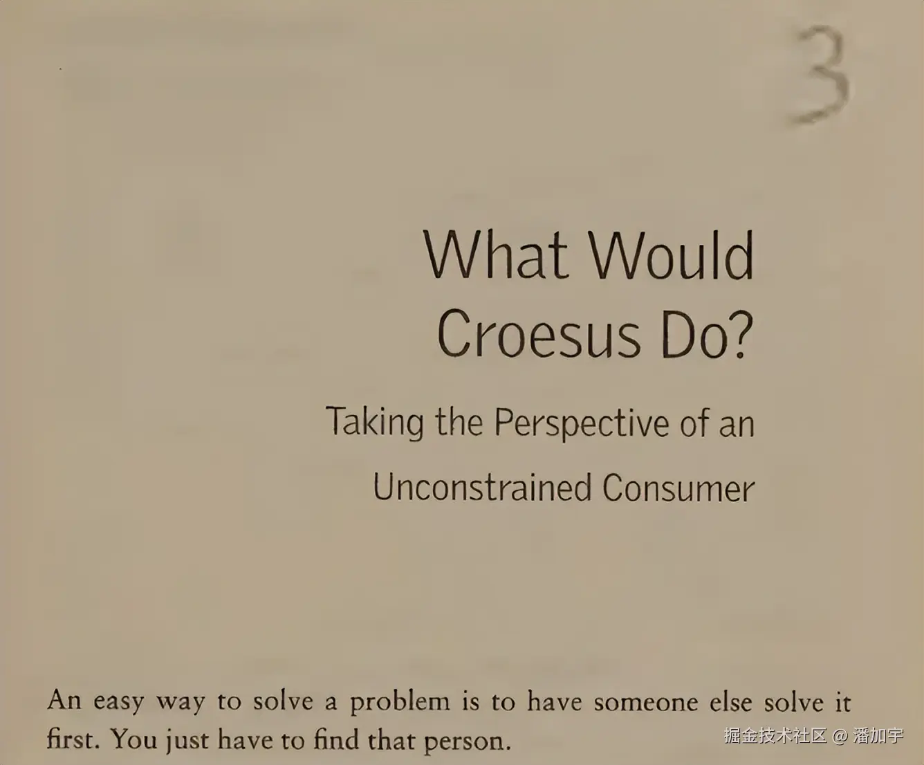 来自耶鲁大学教授Barry Nalebuff和Ian Ayres在2003年出版的书《Why Not?》。在这本书中,两位作者把这个方法叫做“What Would Croesus Do?”(克罗伊斯会做什么),或者叫WWCD。