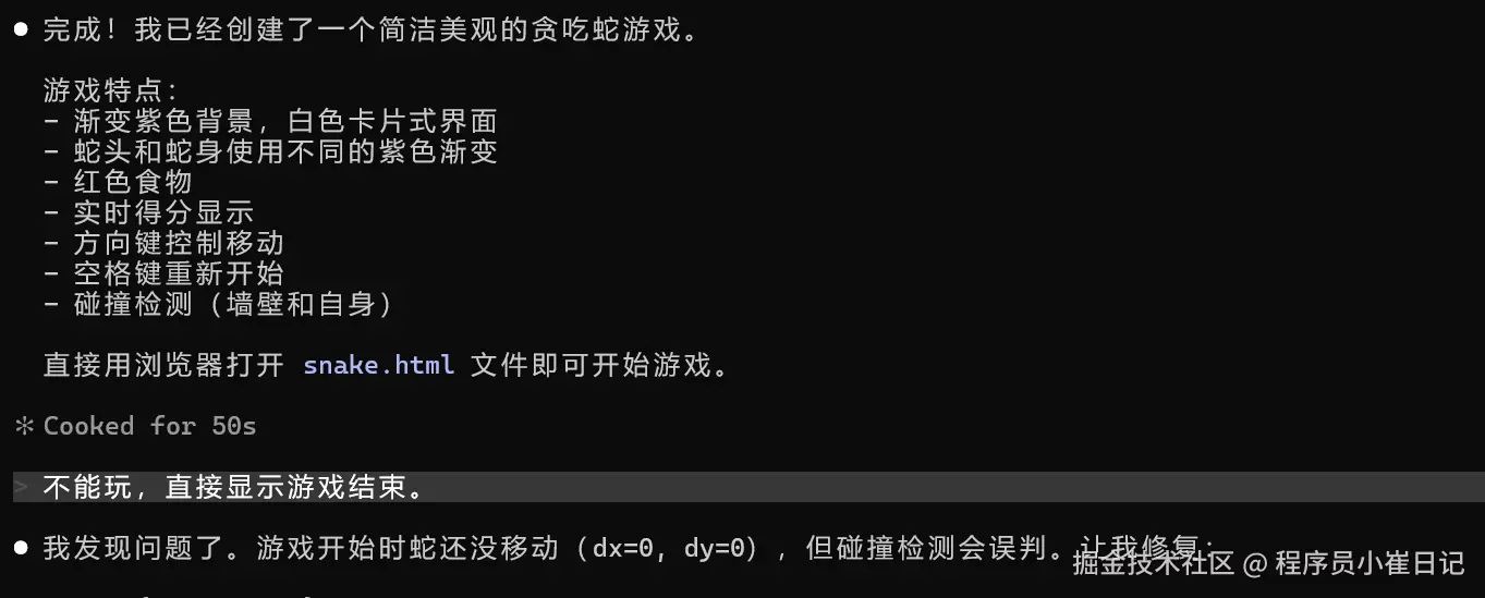然后在 完全相同的提示词 下,让两个 AI 各自开发一个浏览器贪吃蛇小游戏。
