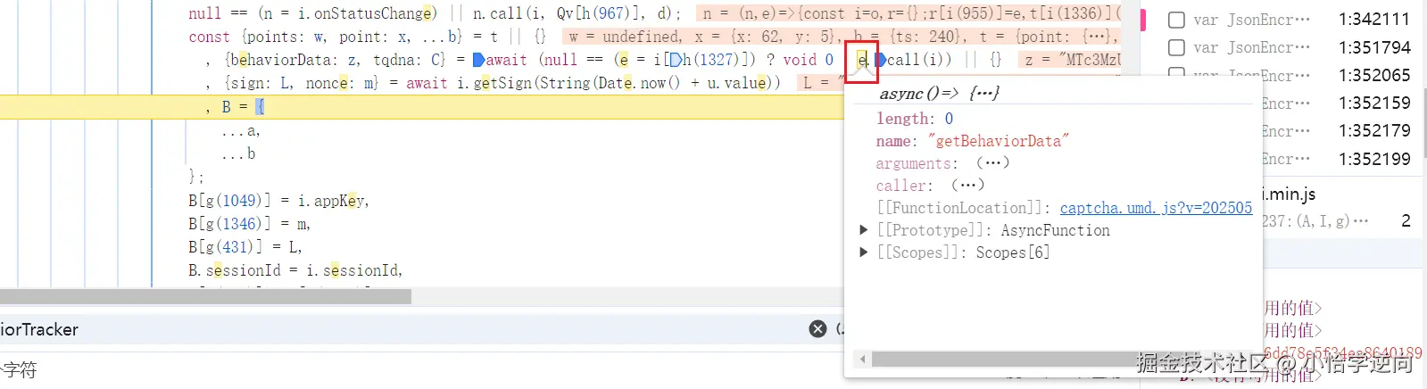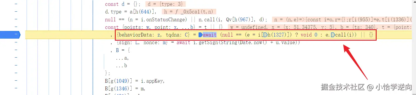 这段代码的逻辑是,执行 等号 后面的异步回调,将返回值中的 behaviorData 赋值给 z ,将返回值中的 tqdna 赋值给 C