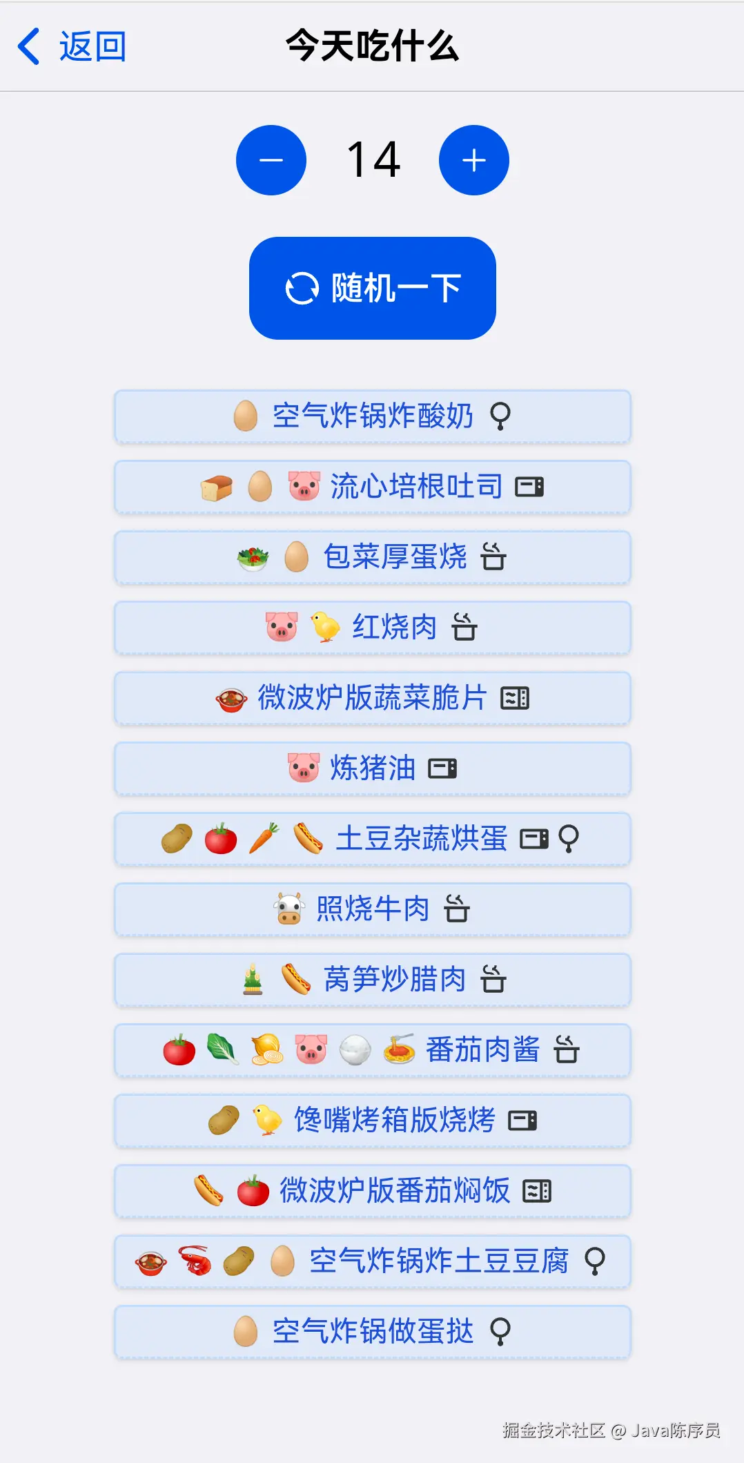 - 贴心小功能:今天吃什么随机推荐,纠结症患者福音,一键生成随机菜单