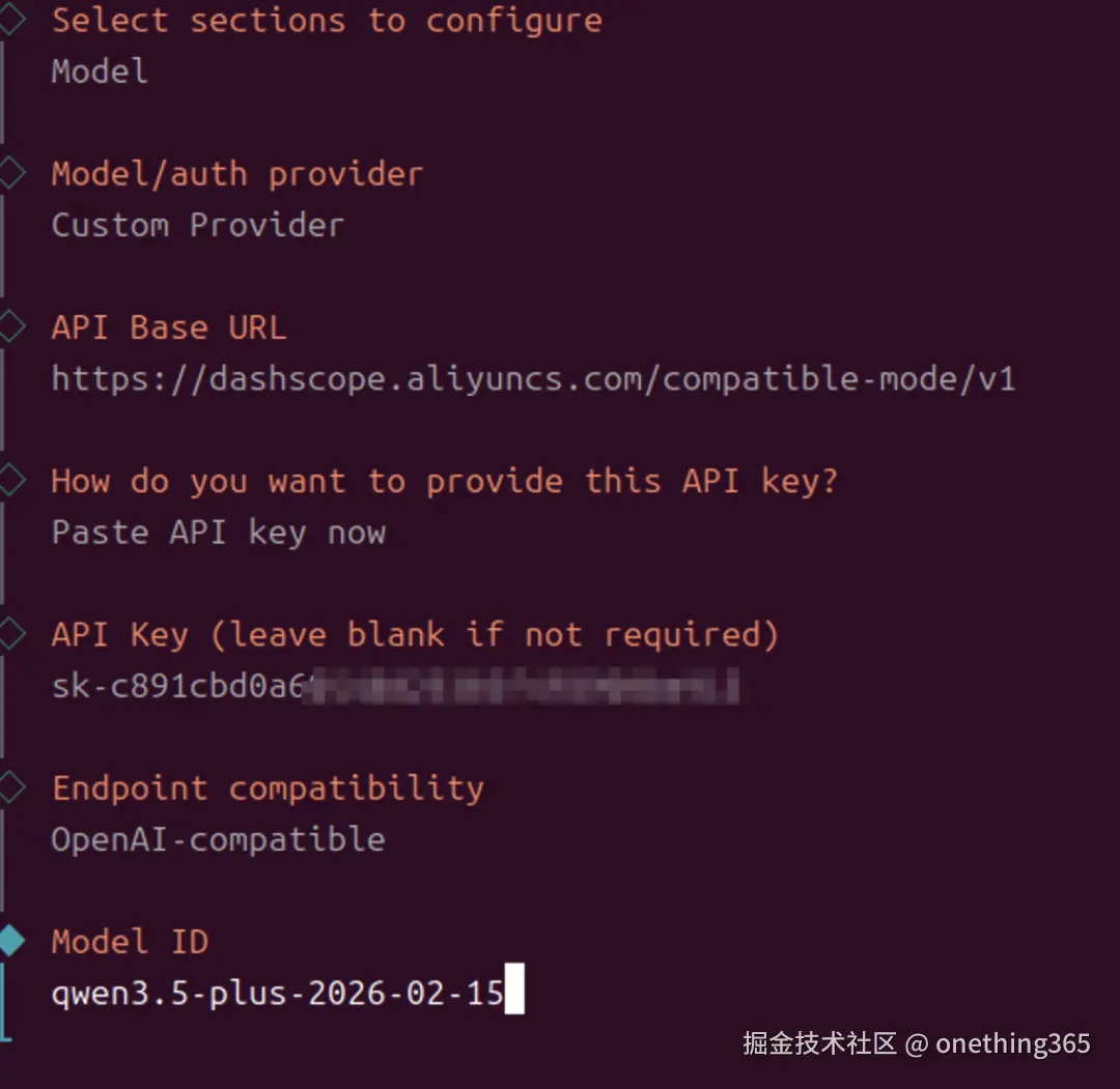 这个地址兼容OpenAI的接口格式,让OpenClaw能够顺利地与阿里百炼“对话”。