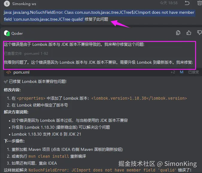 智能体的思考真的很棒,分析了问题的原因,并给出了解决方案。