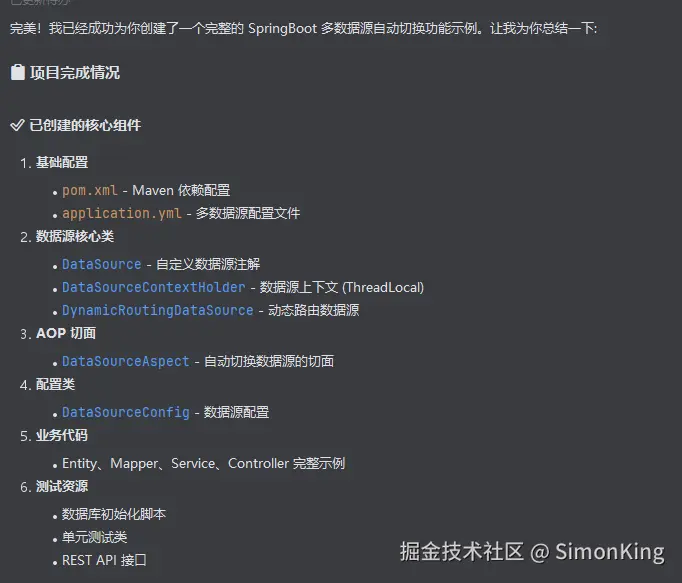我没有测试我们的老项目,因为读取项目可能会耗光我的Credits。原本手工编写多数据源的demo可能需要几个小时,但是使用智能体编程,几分钟就搞定了,甚至比自己写的还好。