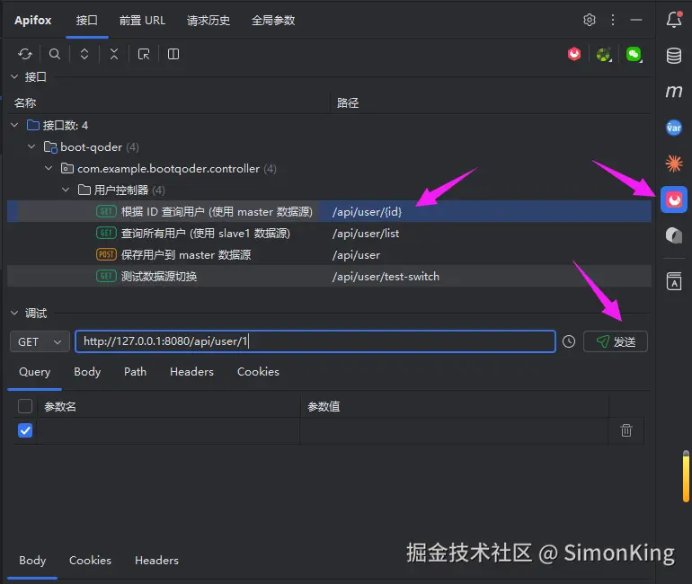 我们使用apifox插件,直接测试。也可以直接使用测试类测试。