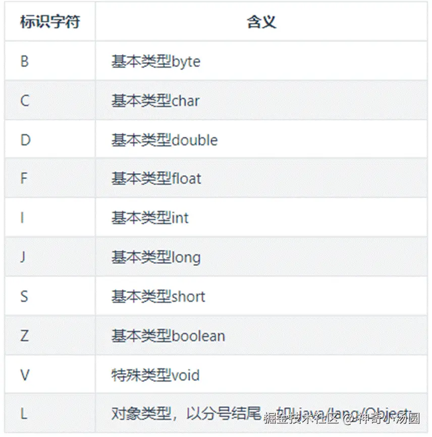 对于数组类型,每一位使用一个前置的 [ 字符来描述,如定义一个java.lang.String[][] 类型的维数组,将被记录为 [[Ljava/lang/Strin