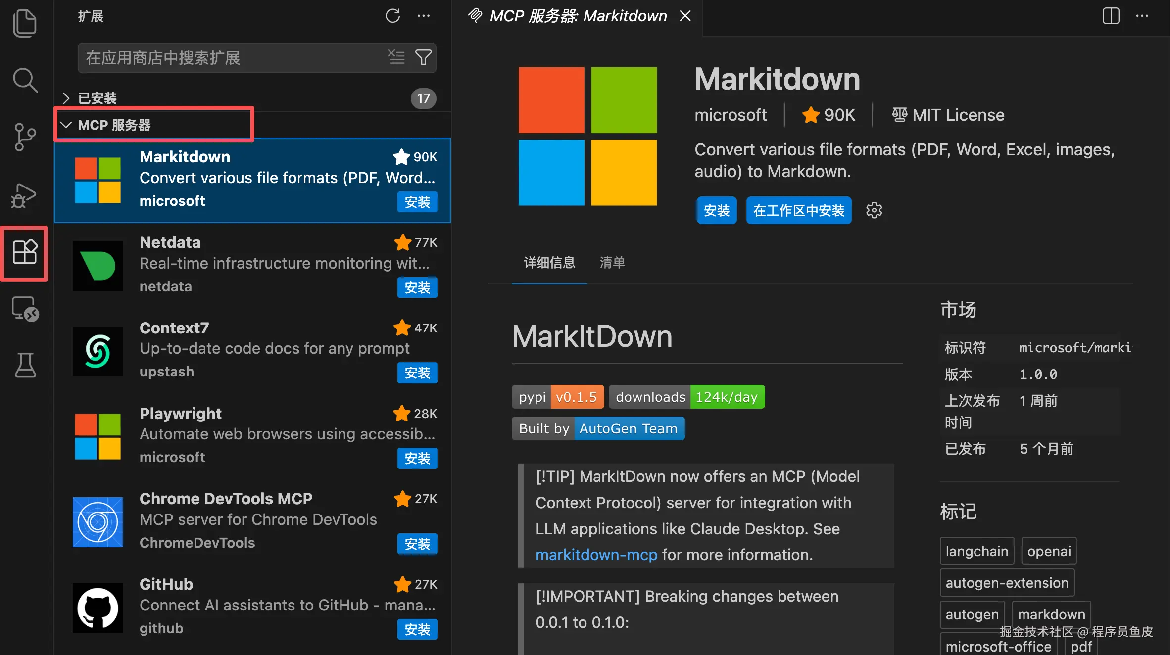 2)打开 VSCode,点击左侧「扩展市场」图标,搜索 "GitHub Copilot",安装官方的 AI 编程插件。