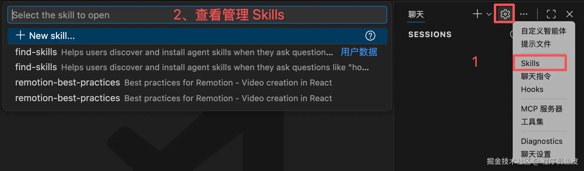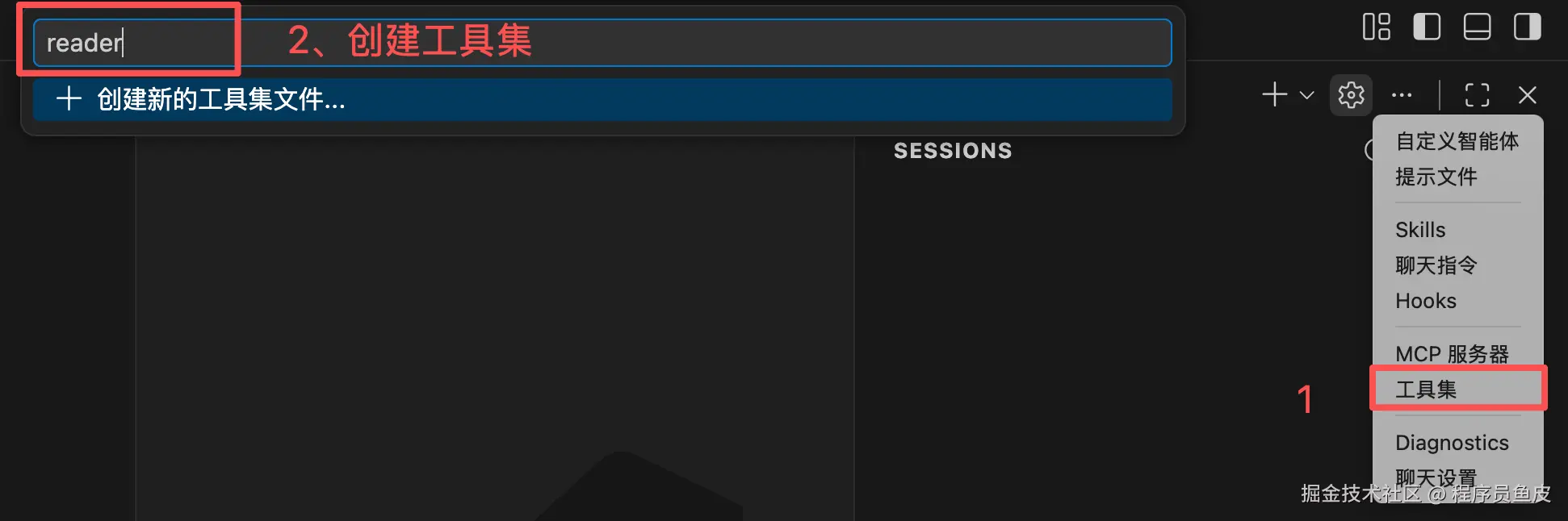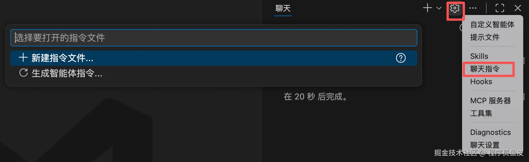 创建方式跟自定义指令完全类似,在对话区域的设置中打开「提示文件」,在弹出的对话框中选择「新建提示文件」: