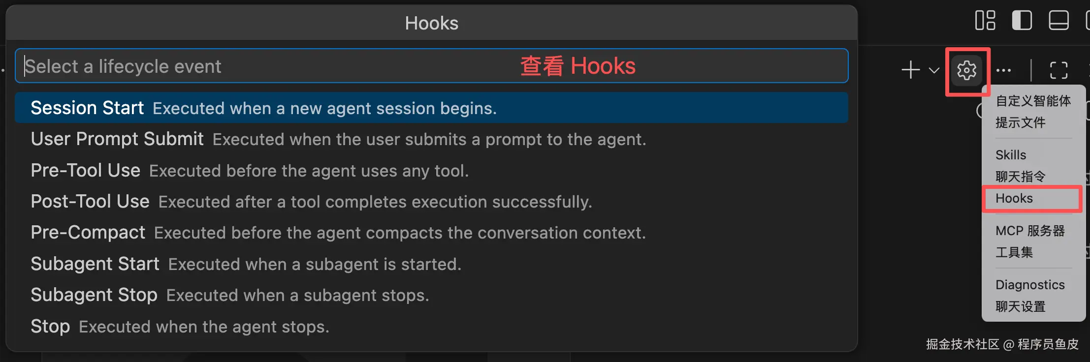 - SubagentStart / SubagentStop:子智能体启动和完成时触发,比如跟踪子任务的执行情况和资源消耗