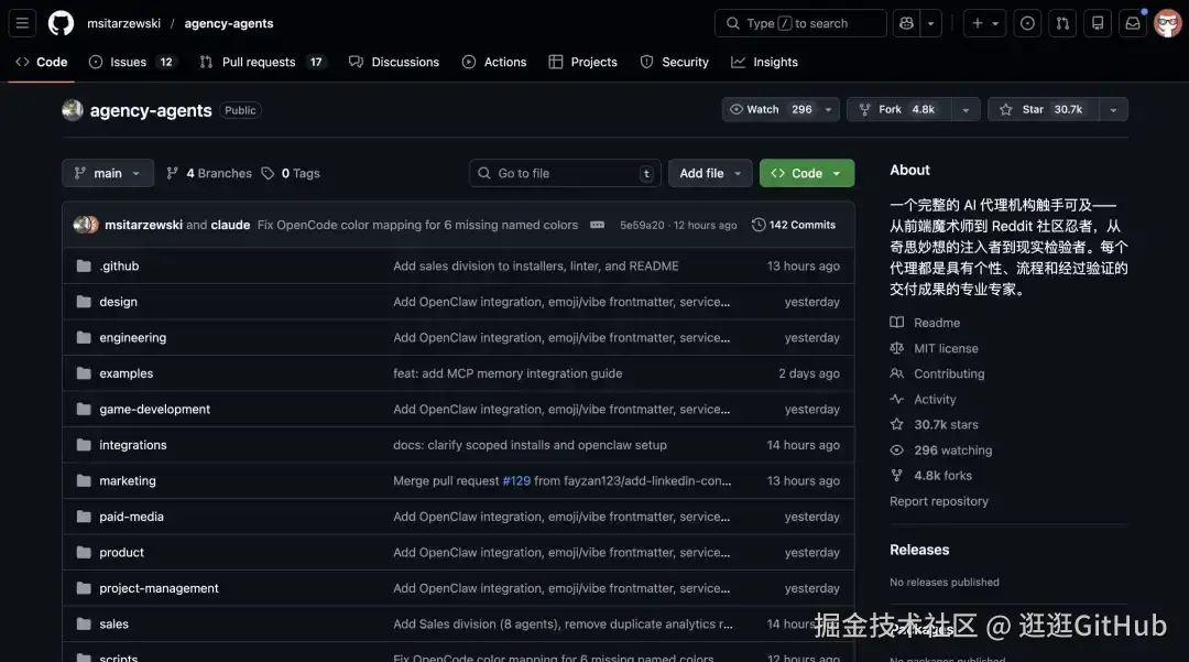 直接照搬 msitarzewski/agency-agents 这个开源项目,把别人沉淀好的虚拟公司 AI 角色的人格设定迁移进去。