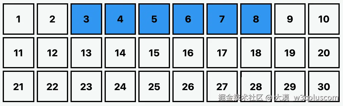 在 CSS 中,如果我们想选中一段连续范围的元素。传统做法通常依赖 :nth-child() 选择器来选取某一范围内的元素。例如,我们可以通过组合两个 :nth-child() 条件来实现一个区间选择: