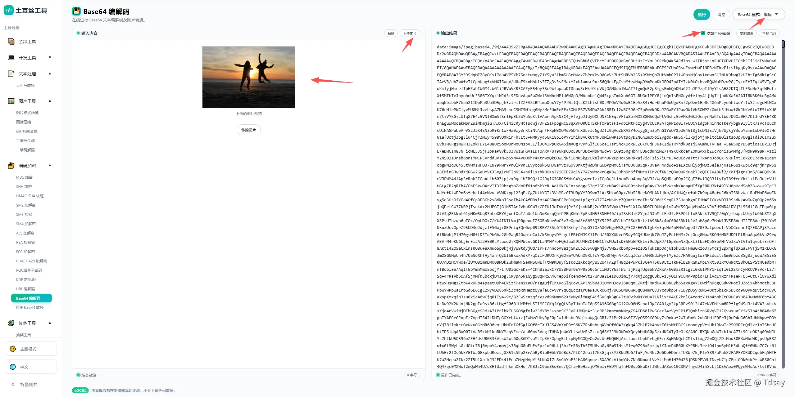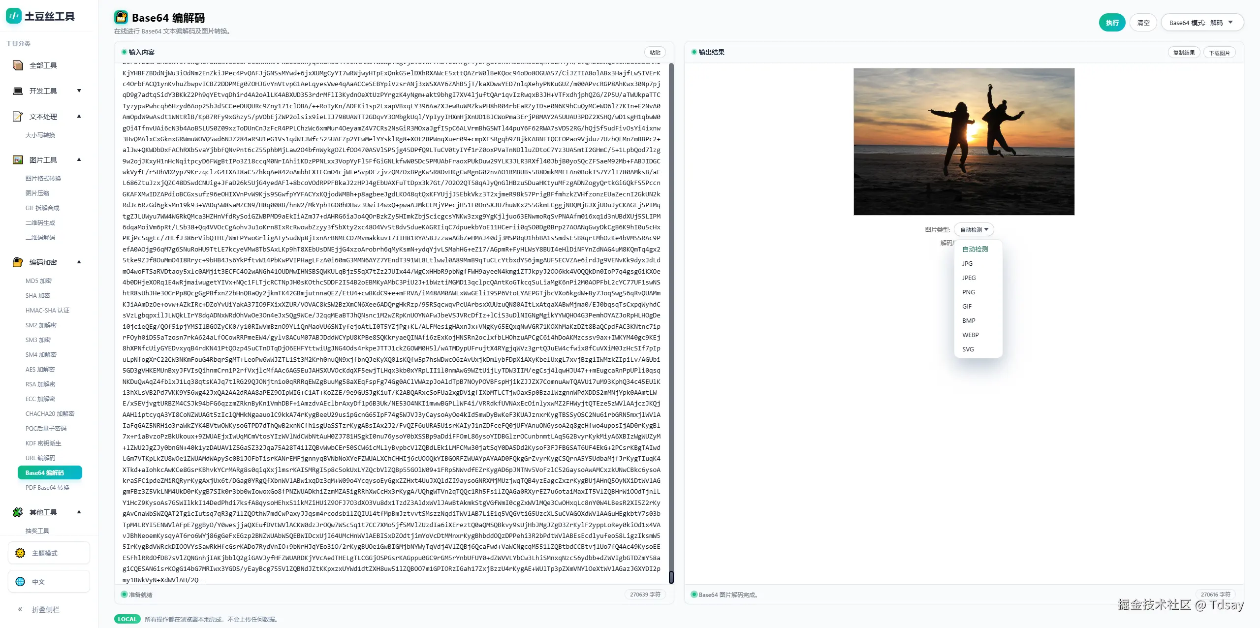 如果输入的是图片数据,也可以直接转换为 Base64 或恢复为图片文件。并且可以自己选择编码后的BASE64数据是否包含image前缀。
