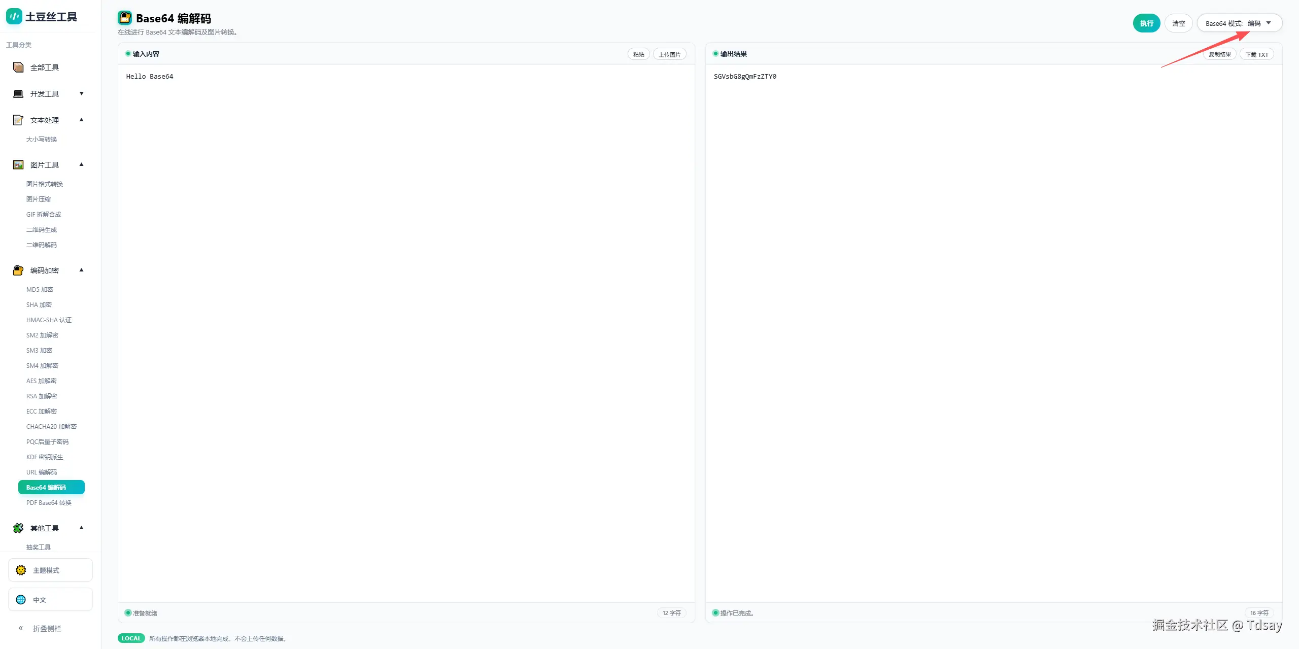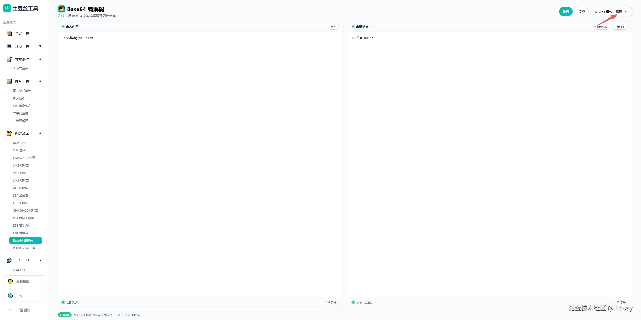 例如:输入 Hello Base64,执行 Base64 编码后得到:SGVsbG8gQmFzZTY0