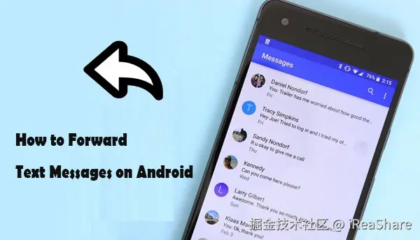 如何轻松、快速地转发安卓手机的整段短信对话?答案就是使用 iReaShare Android Manager。这款一站式安卓设备管理工具,可在电脑上对安卓手机 / 平板的短信、通讯录、媒体文件、应用等各类数据进行高效管理。 如果你需要批量转发手机短信,可免费下载试用这款工具,即刻体验更便捷的安卓短信管理方式。
