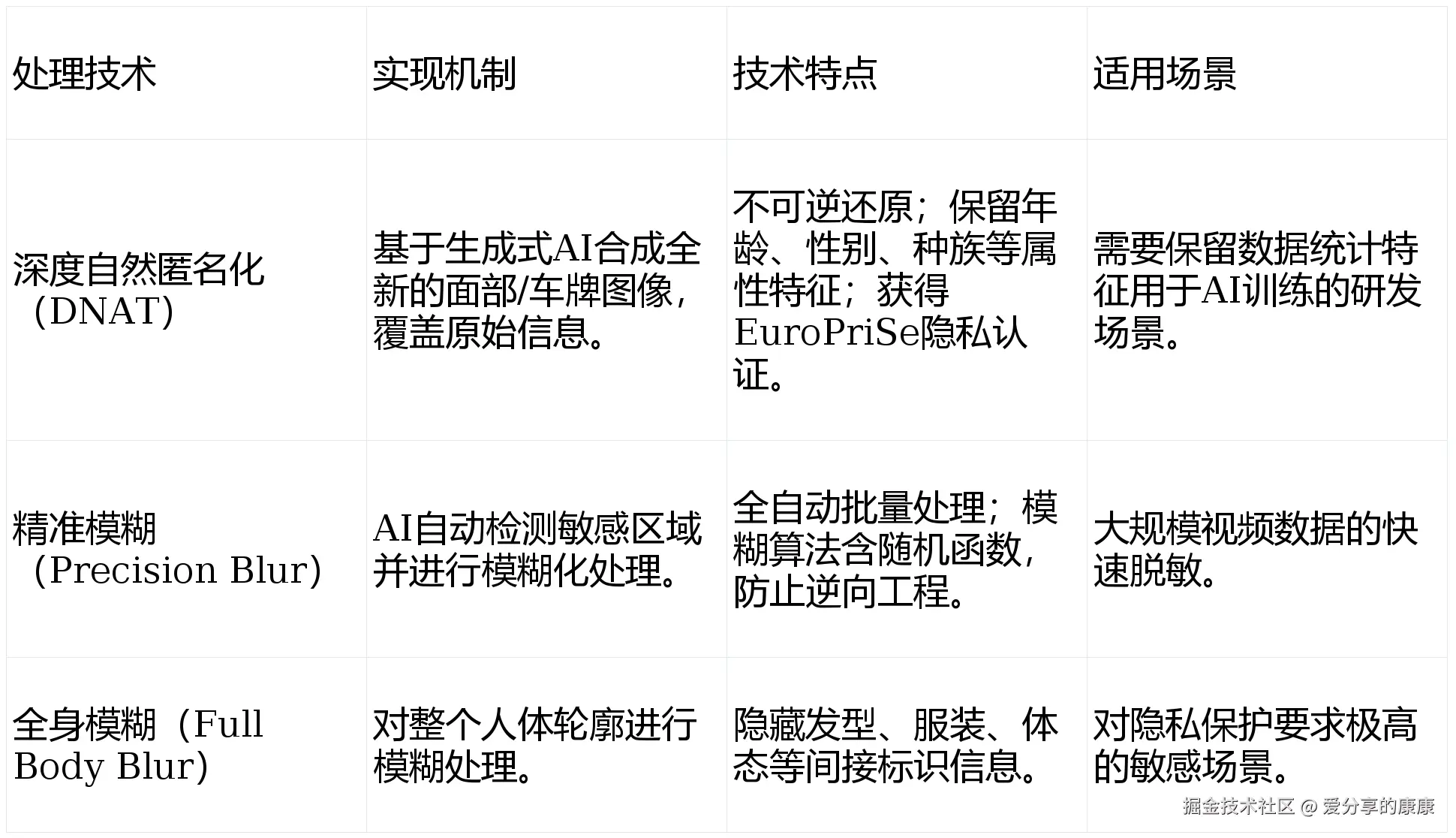 brighter AI 的核心能力体现在对图像和视频中敏感信息(人脸、车牌、人体)的处理上。其提供三种主要技术路径,分别对应不同的数据使用场景: