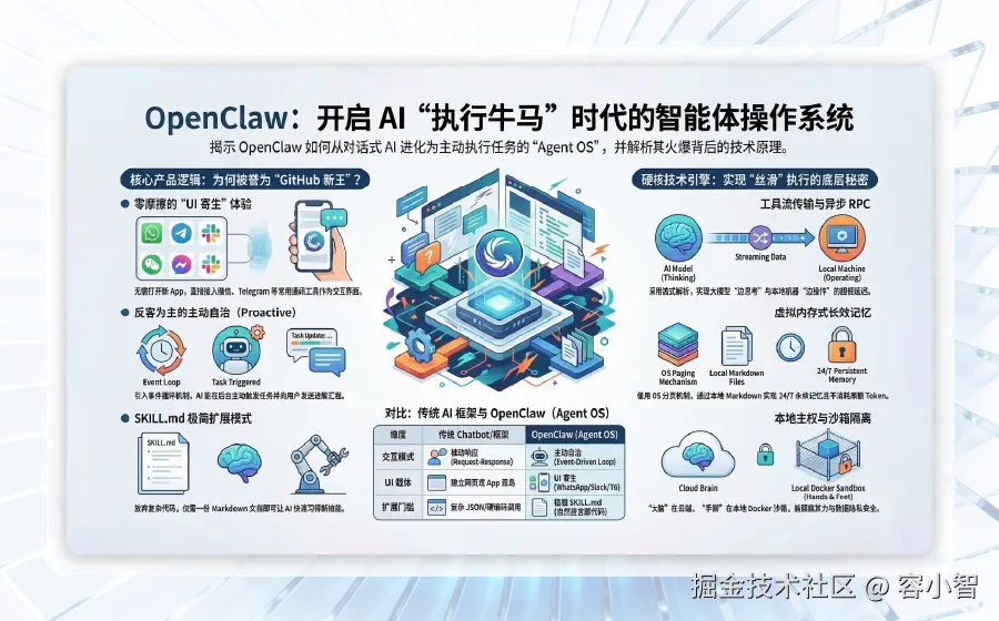 从一段简陋的“代码垃圾”,到GitHub霸榜的传奇产品,OpenClaw用短短四个月的时间,完成了从“玩一下”到“神迹降临”的蜕变。它不仅终结了AI“只聊不做”的时代,更开启了智能体自主执行的全新纪元,其开源精神与技术突破,值得整个行业学习与致敬,也为后续智能体产品的发展奠定了坚实基础。