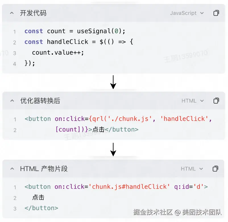 Qwik 对产物拆分的秘诀藏在这个我们熟悉的符号里:$。当开发者在 Qwik 中编写带 $ 标记的函数(如 onClick$ ),Qwik 的 Rust 优化器会自动将其转换为 QRL,这一过程完全无需开发者手动拆分。
