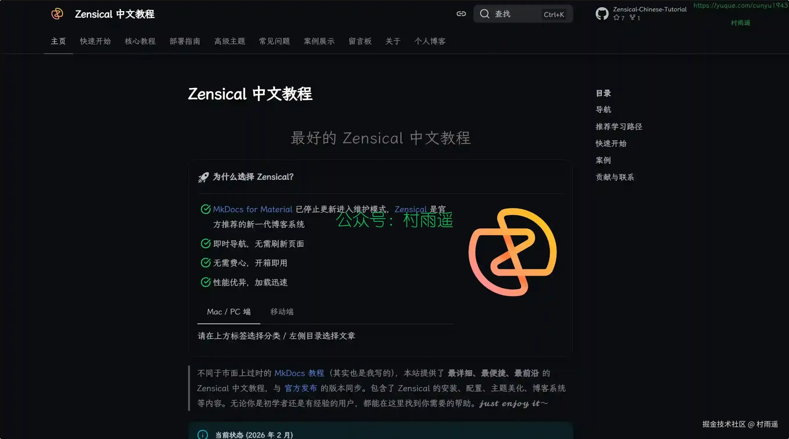 最详细、最便捷、最前沿的 Zensical 中文教程。