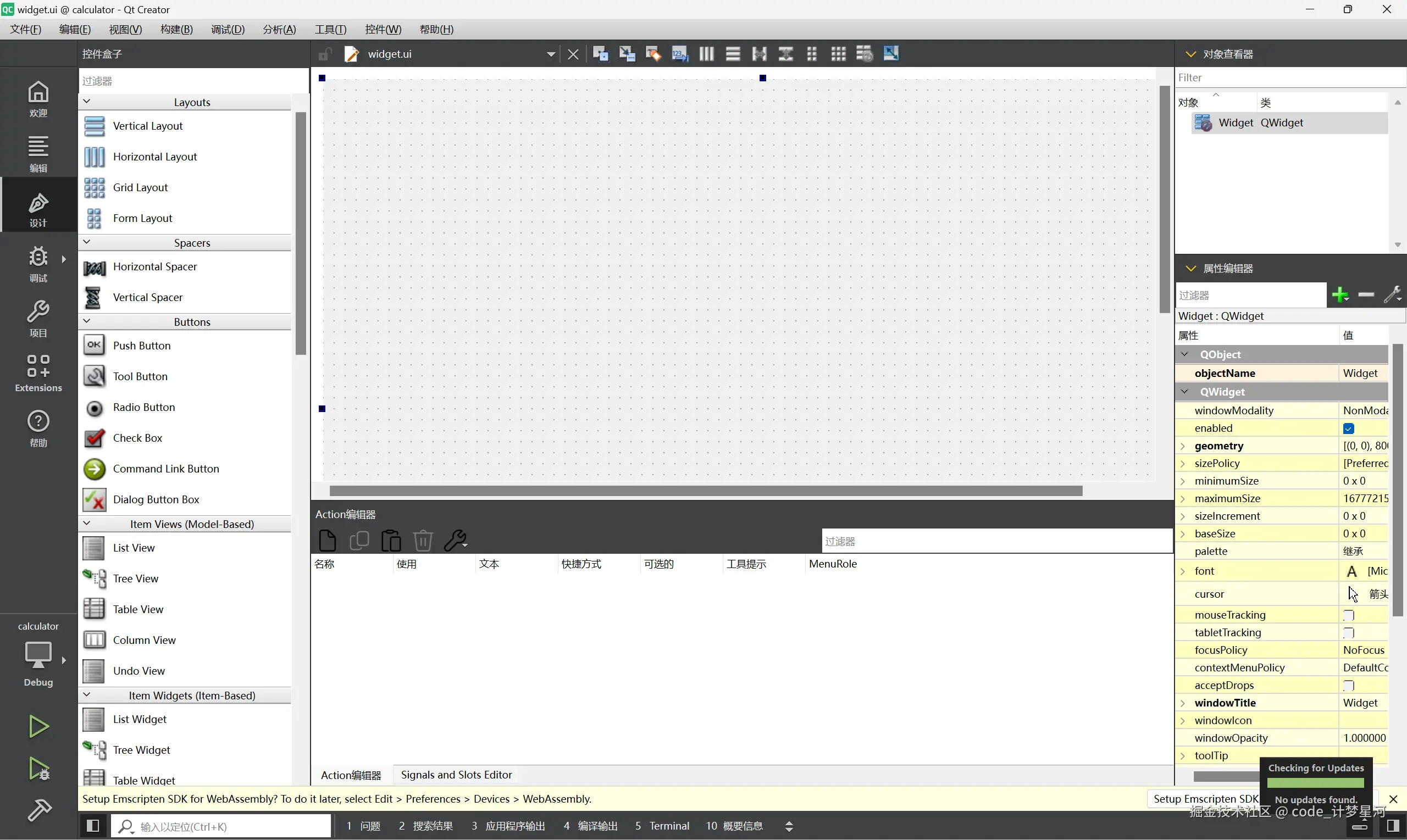 项目命名为calculator,并设定为widget,编译模式为qmake