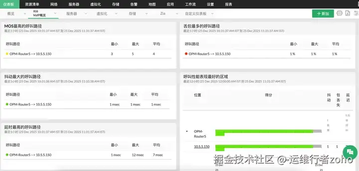 作为领先的网络监控系统,OpManager凭借全栈监控能力与AI驱动的智能分析,为企业提供通话质量监控的完整解决方案。