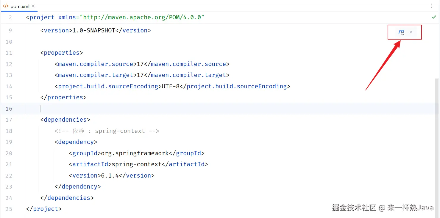 - 刷新依赖:保证每一次引入新的依赖,或者修改现有的依赖配置,都可以加入最新的坐标