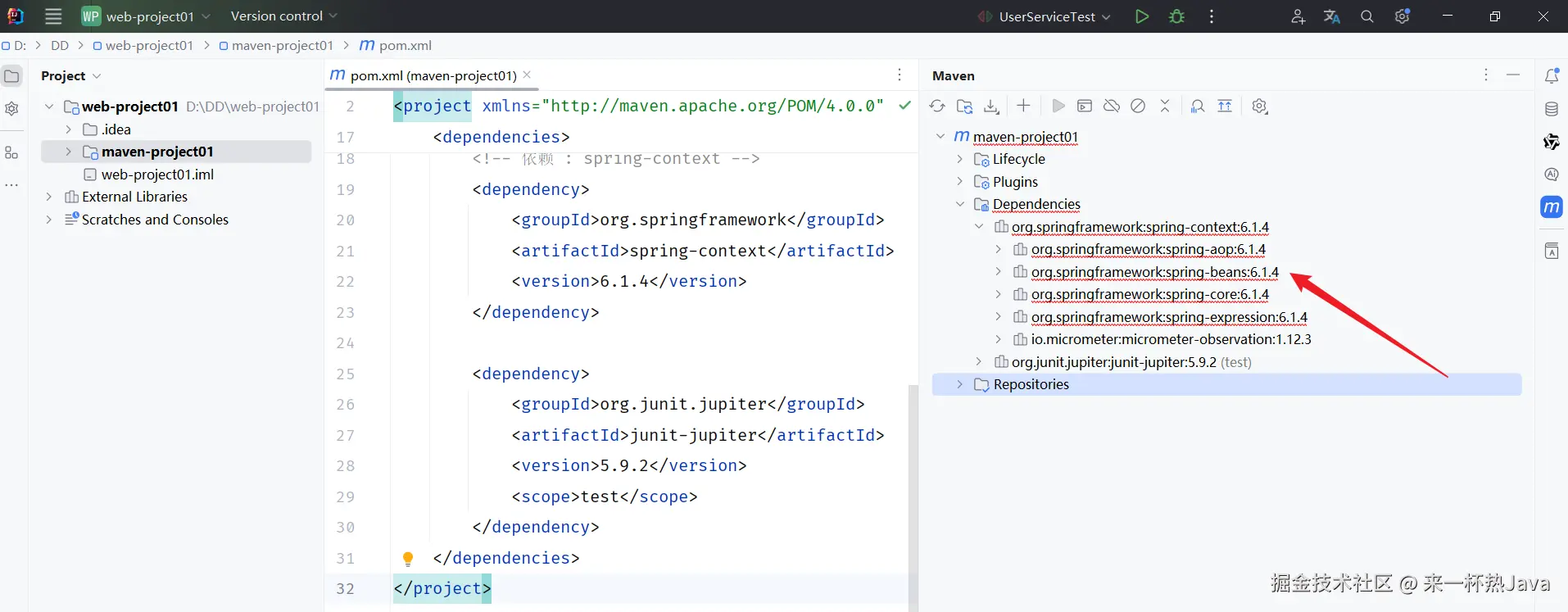 2. 在maven项目的配置文件中,加入上面这么一段配置信息之后,maven会自动的根据配置信息的描述,去下载对应的依赖。 然后在项目中,就可以直接使用了。